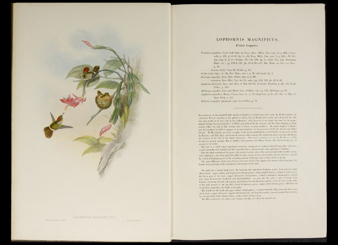 T he discovery of this beautiful little species of Lophornis is said to have been made by M. De Lalaude, the
