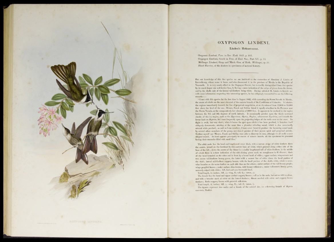 Oxypogon Lindenii, Gould in Proc. o f Zool. Soc., Part X V. p. 14.