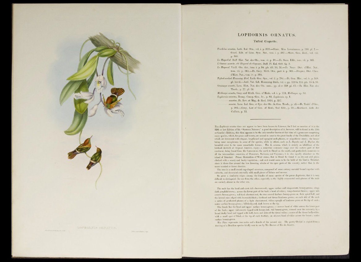 T he Lophornis ornatus does not appear to have been known to Linnaeus, for I find no mention of it in the