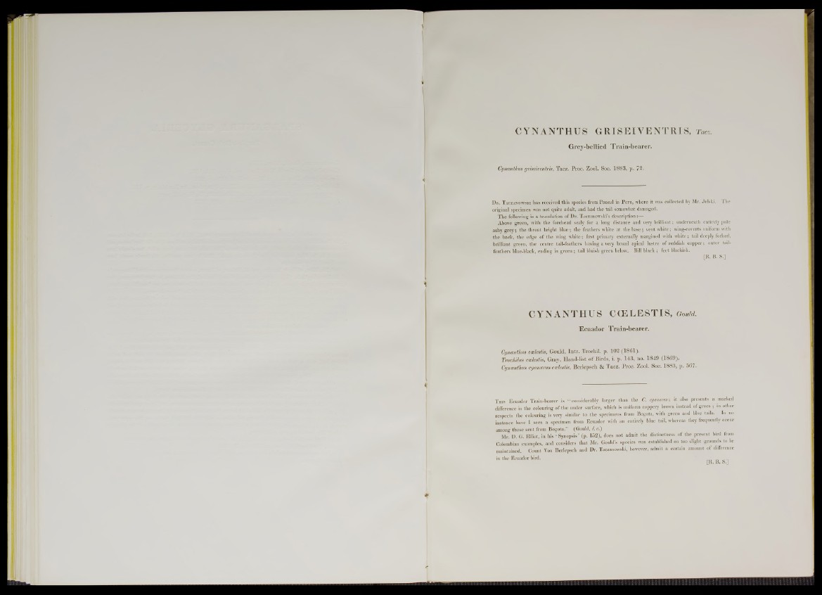Vrochilm ccelestis, Gray, Hand-list o f B irds, i. p. 1 43, no. 1 8 4 9 (1 8 6 9 ).