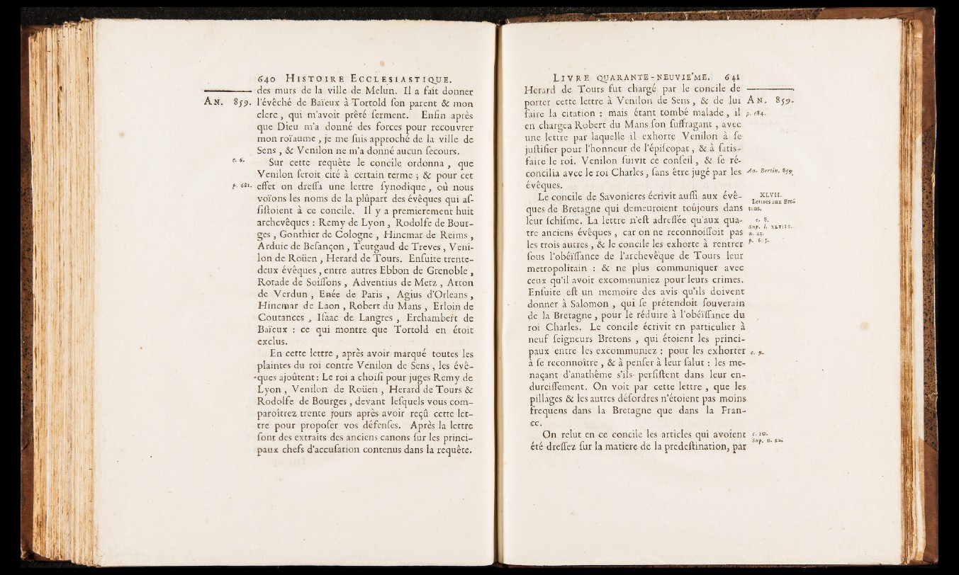 Le concile de Savonieres écrivit auffi aux évè- , xlvii. ■ . Lettres aux Breques