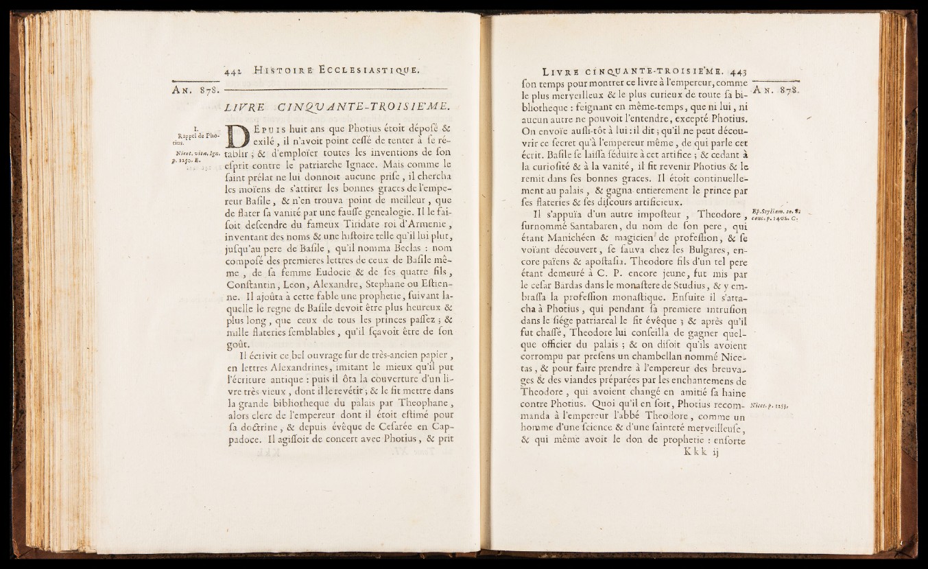 la curiofité & à la vanité, il fit revenir Photius Si le
