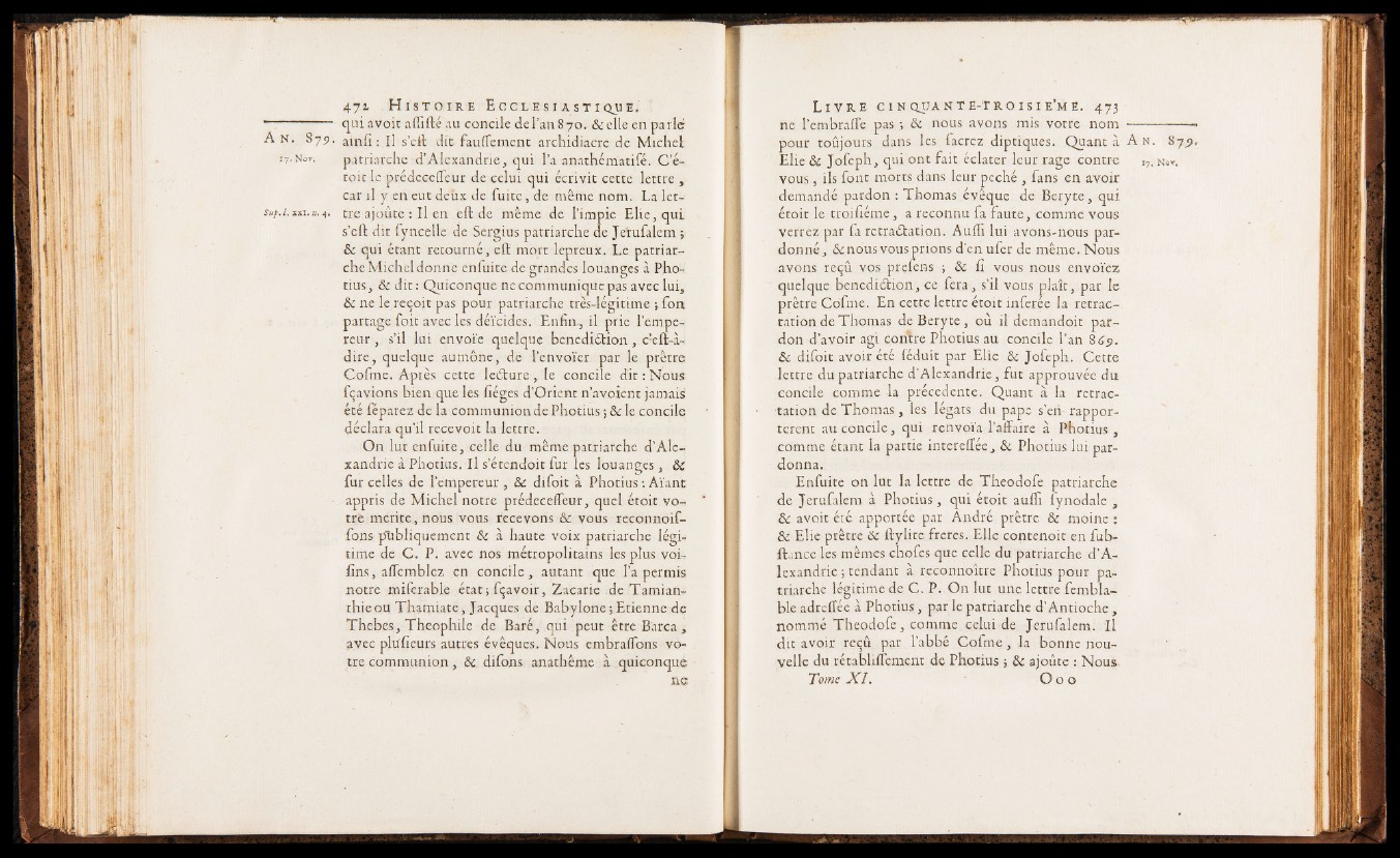 17.N0V. patriarche d’Alexandrie, qui l’a anathématifé. C ’é-