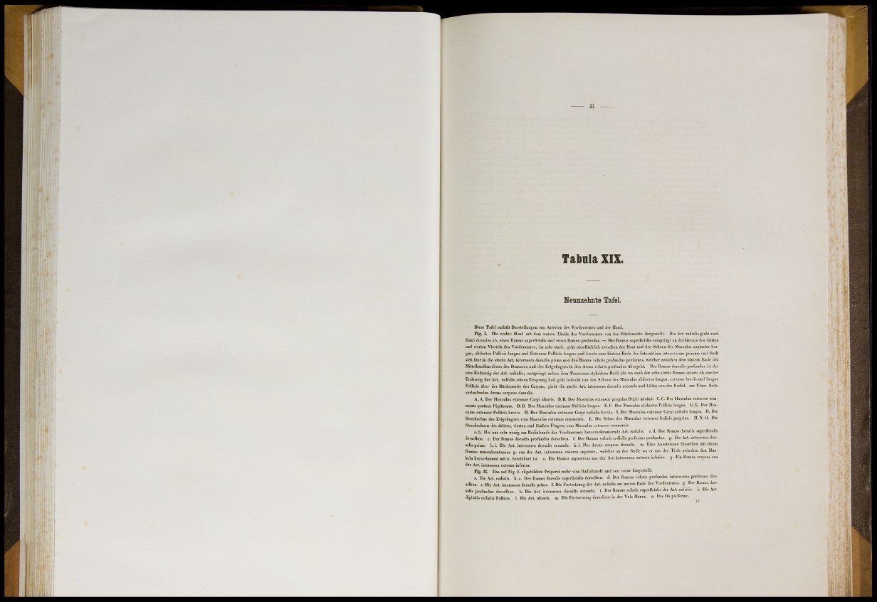 Fig. I. Die rechte Hand mit dem untern Theilc des Vorderarmes von der Rückenscitc dargestellt. Die Art. radialis giebt zwei