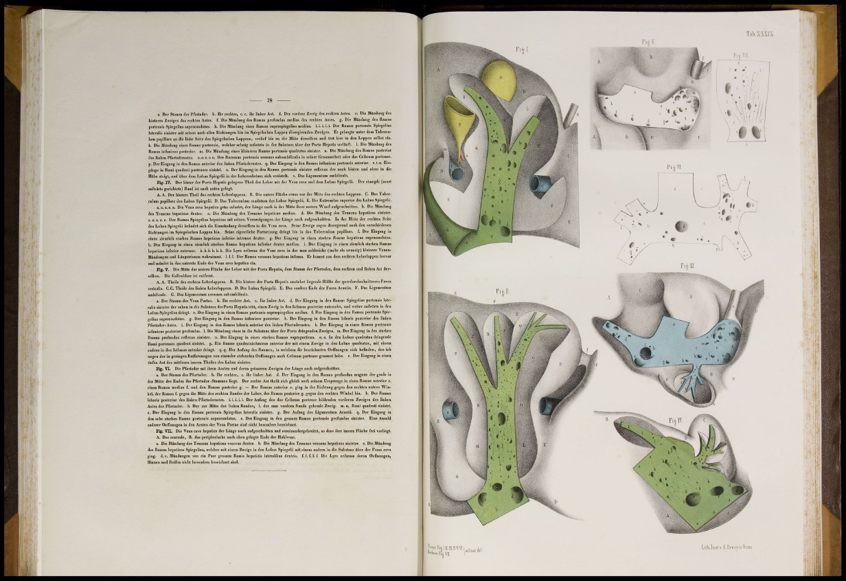 A. A. Tbeile des rechten Leberlappens. B. Die hintere der Porta Hepatis zunächst liegende Hälfte der qucrdurchschnittenen Fovea