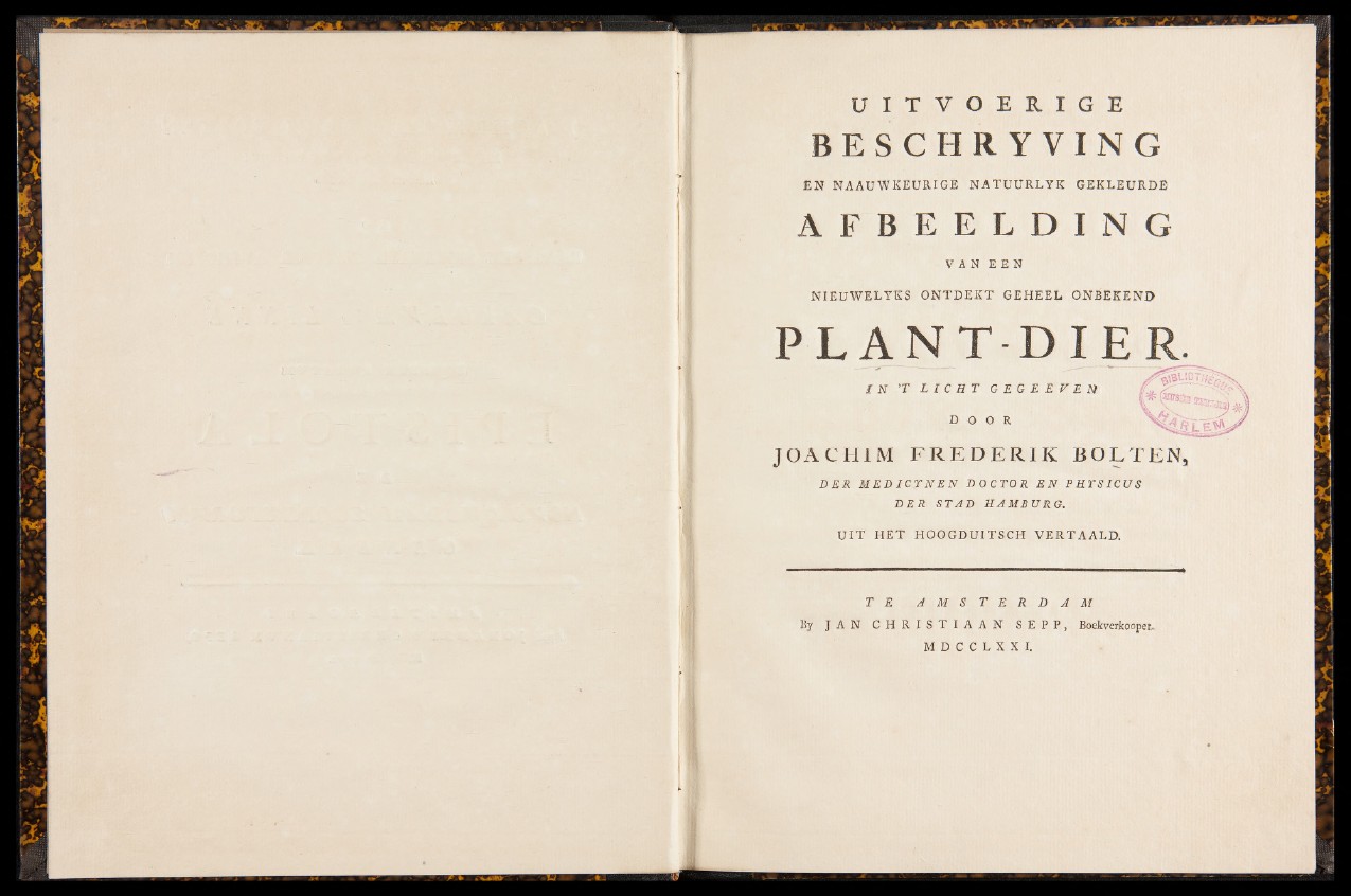 By J A N C H R I S T I A A N S E P P , Boekverkooper.