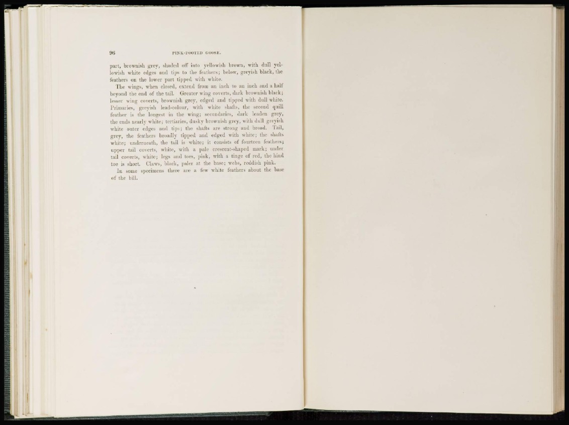 tail coverts, white; legs and toes, pink, with a tinge of red, the hind