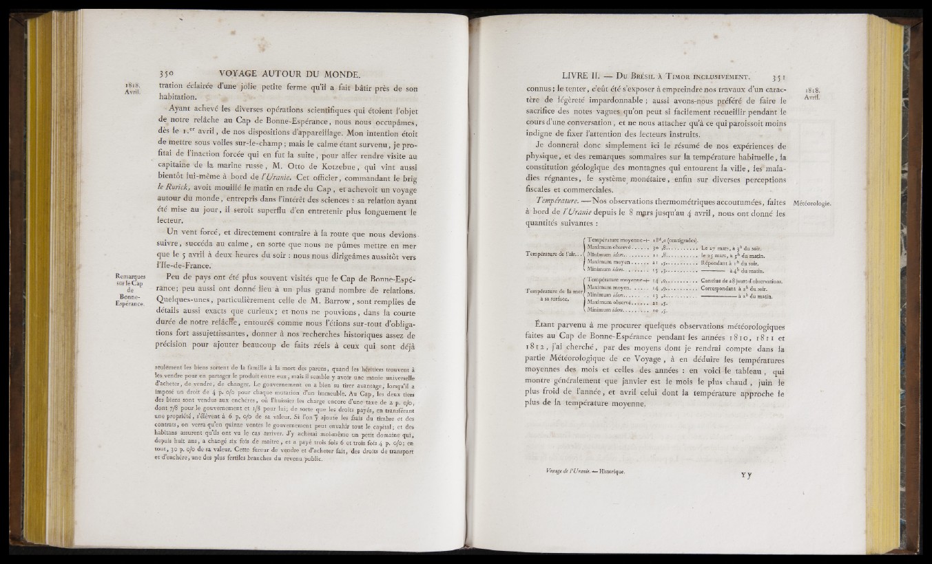 partie Météorologique de ce Voyage , à en déduire les températures