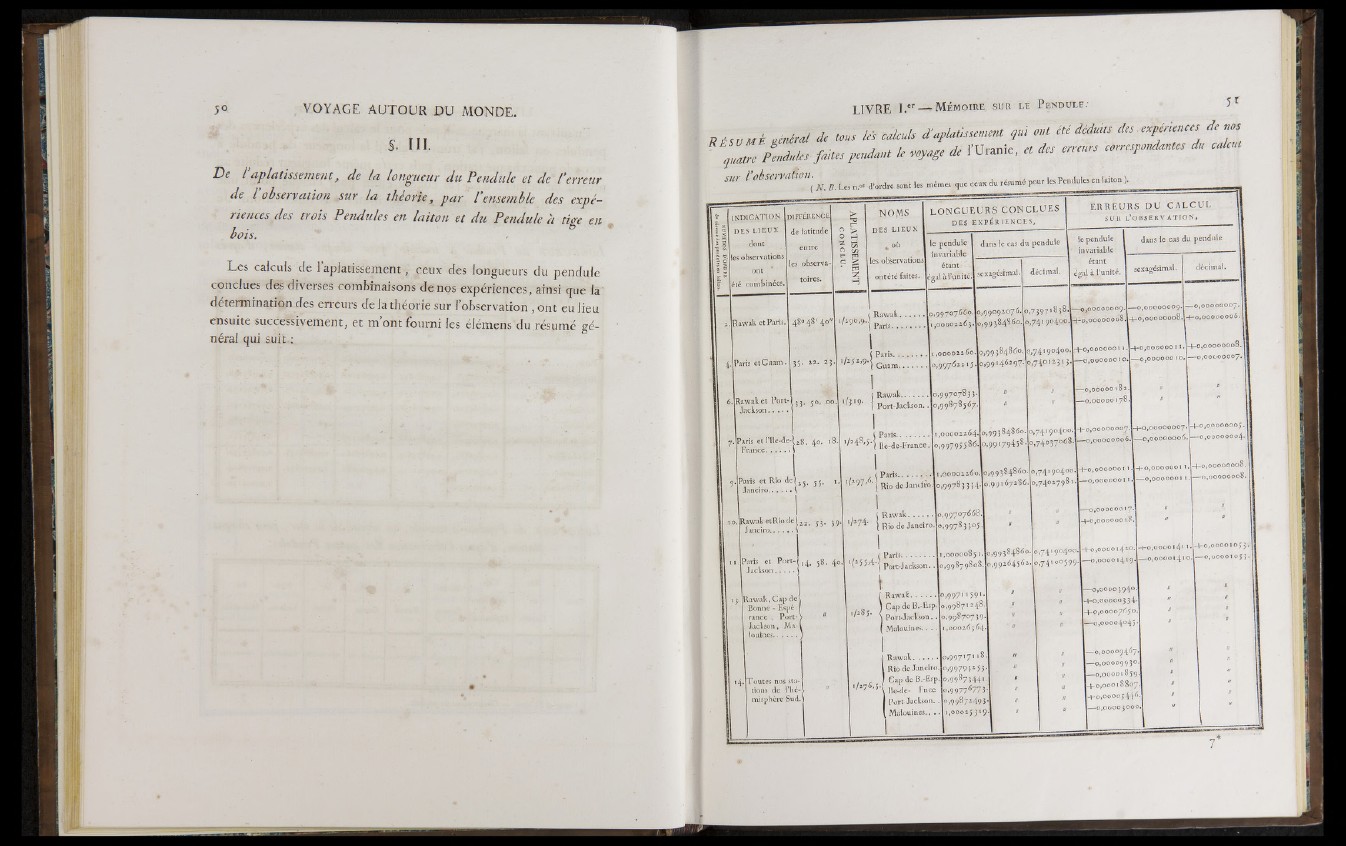 R È S V M l général de tous les calculs d'aplatisse,ncnt qui ont été déduits des expériences de nos