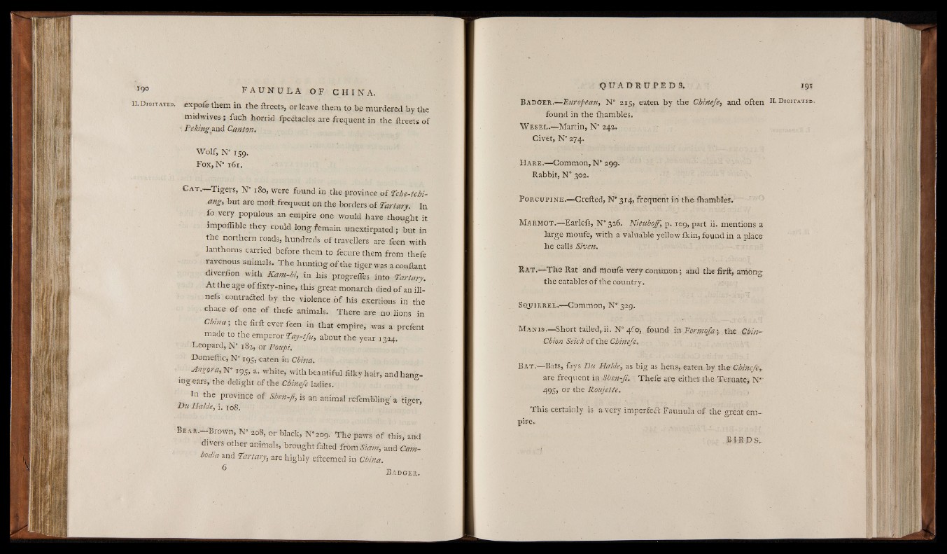 B ad g e r .—European, N° 215, eaten by the Chinefe, and often II. D i g i t a t e d .