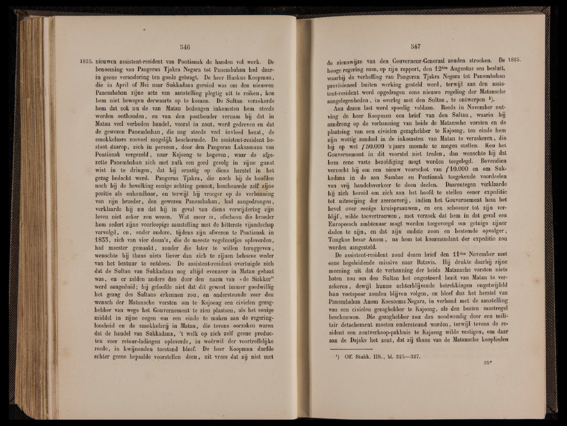 1835.  nieuwen  assistent-resident  van  Pontianak  de  handen  vol  werk.  De