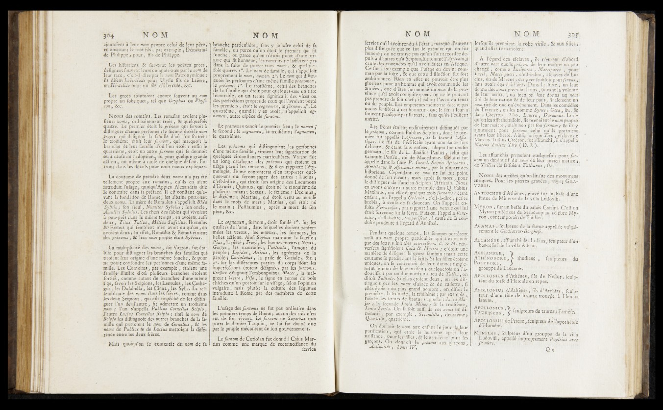 Les prénoms qui diftinguoîent les petfônhés