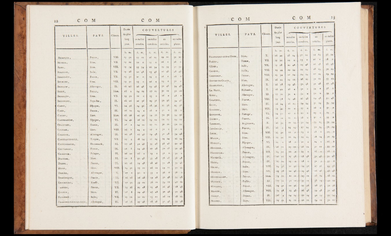 ■ Caen , France, IX. u5 10 25 0 28 0 31 0 33 •o| Limoges, [ Idem. VIII, I-S j*o 22 O . 25 0 0