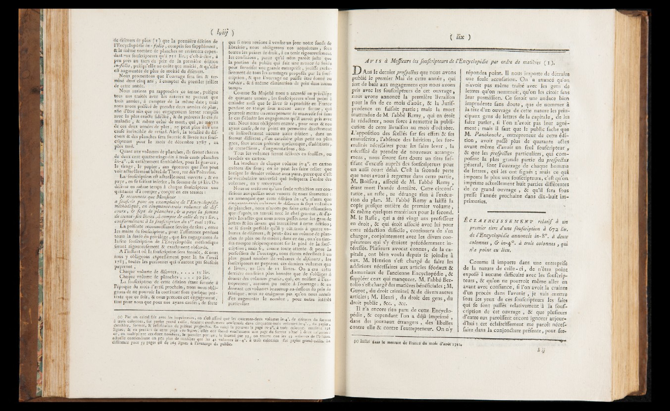 A v i s à Mejfieurs les foufcripteurs de l'Encyclopédie par ordre de matières ( i ).