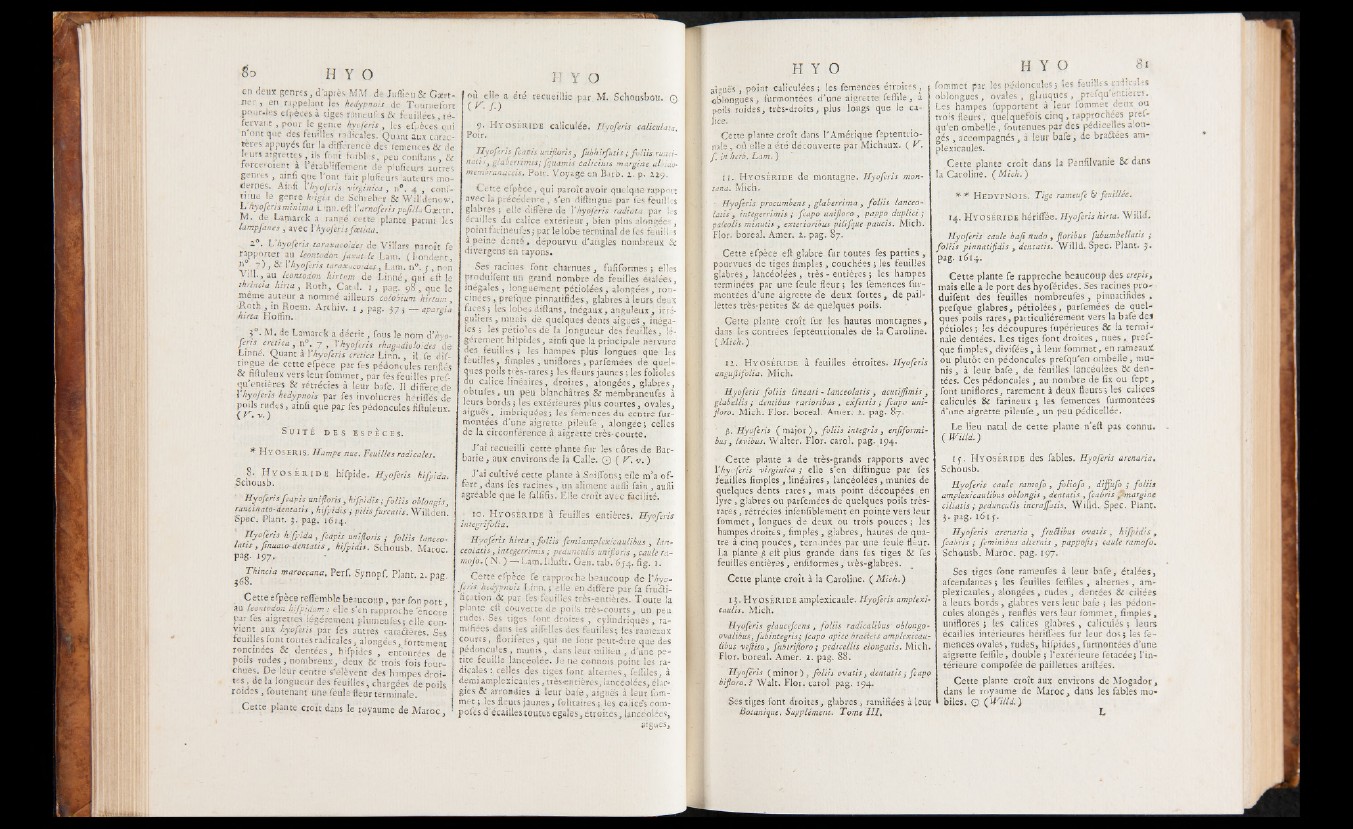 é r a n t , pour le genre hyoferis, les efpèces qui