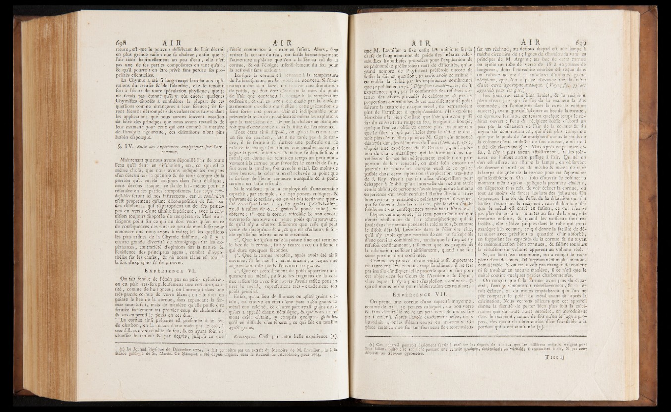 §. I V . Suite des expériences analytiques fui**l'air