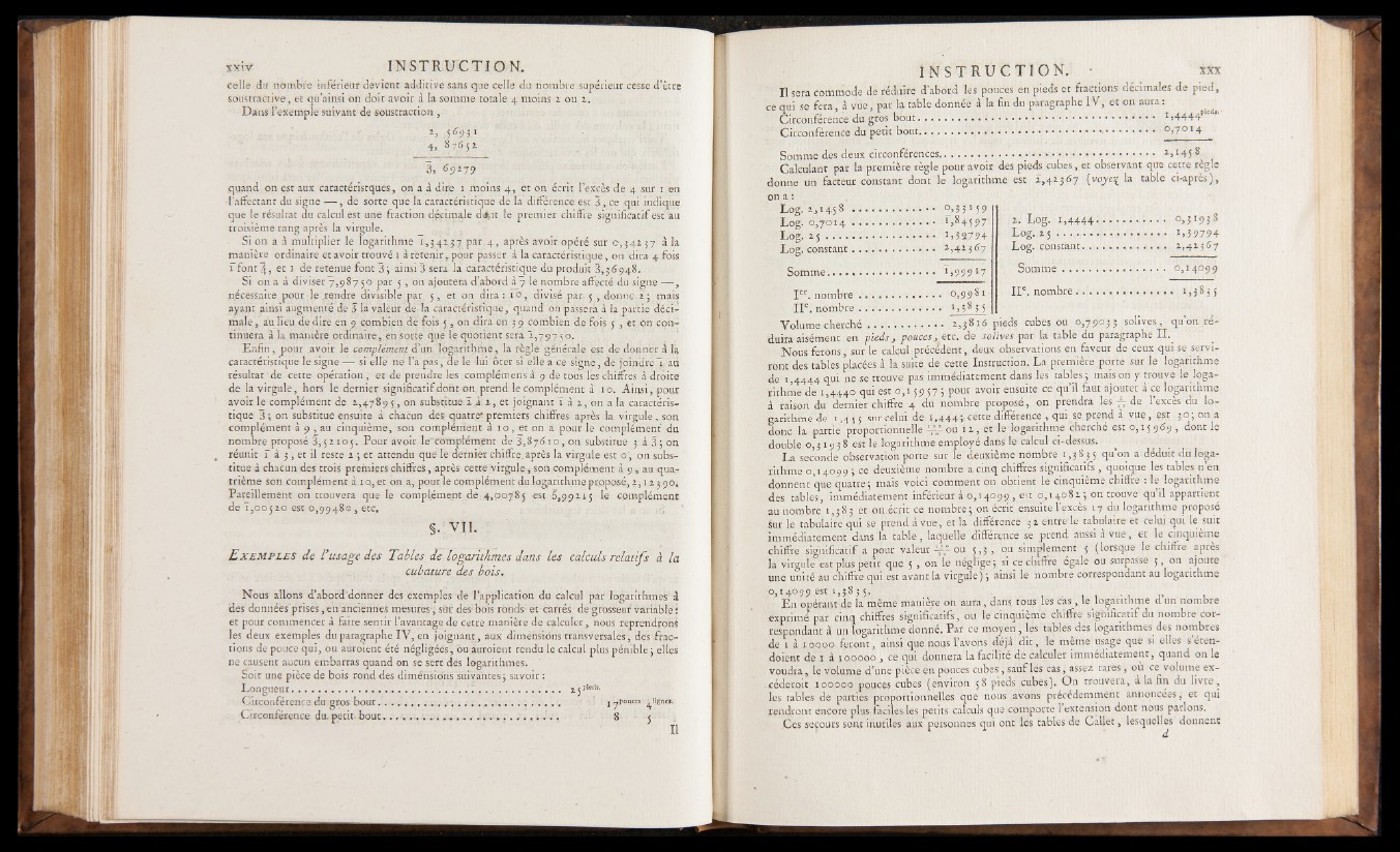 E x em p l e s de l ’usage des Tables de logarithmes dans les càlculs relatifs à la