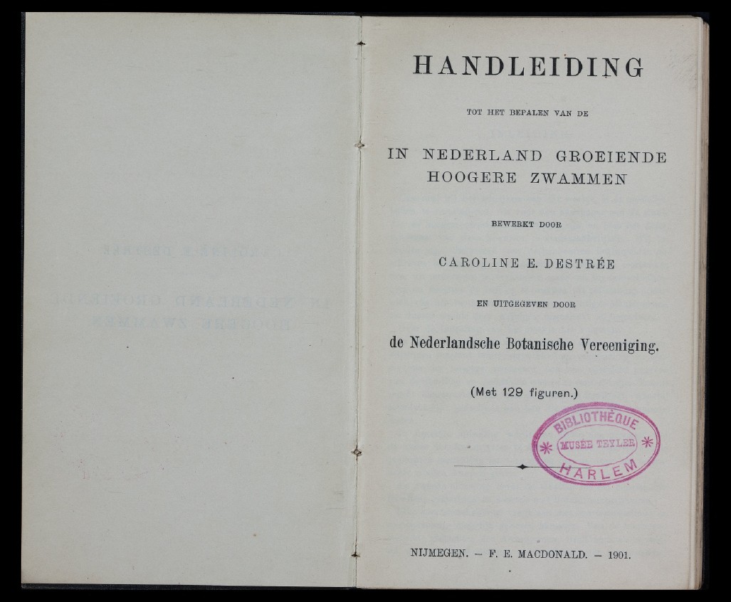 + H A N D L E I D I N G TOT HET BEPALEN VAN BE IN NEDERLAND GROEIENDE HOOGEEE ZWAMMEN BEWERKT DOOR CAROLINE E. DESTRÉE EN DITGEGEVEN DOOR de ííederlandsche Botanisclie Yereeniging. (Met 129 figuren.) NIJMEGEN, - F. E. MAODONALD. - 1901,
