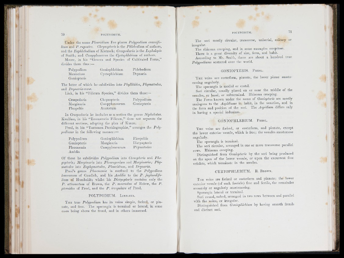 Of these he subdivides Polypodium into Ctenopteris and P h e gopteris;