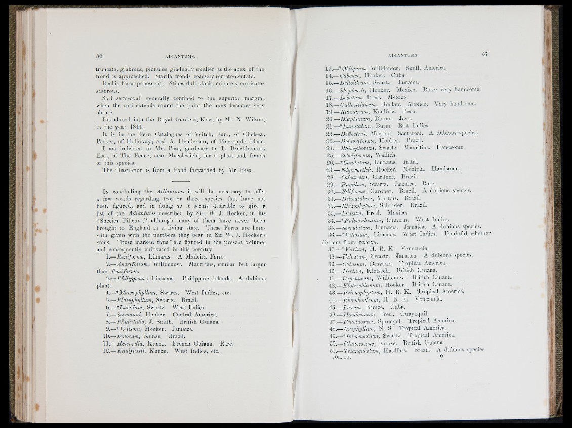 list of the A d ia n tum s described by Sir. AV. J . H o o k e r, in his