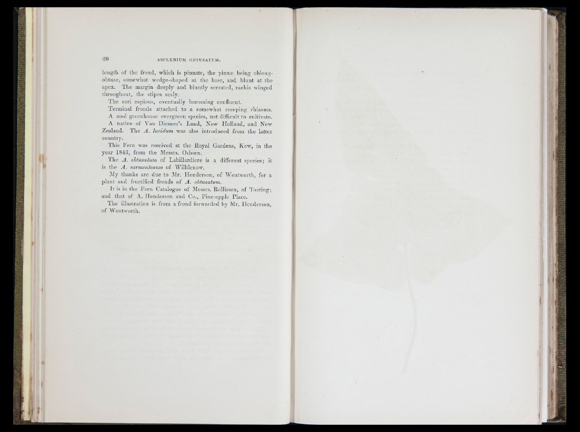 This Fern was received at the Royal Gardens, Kew, in the
