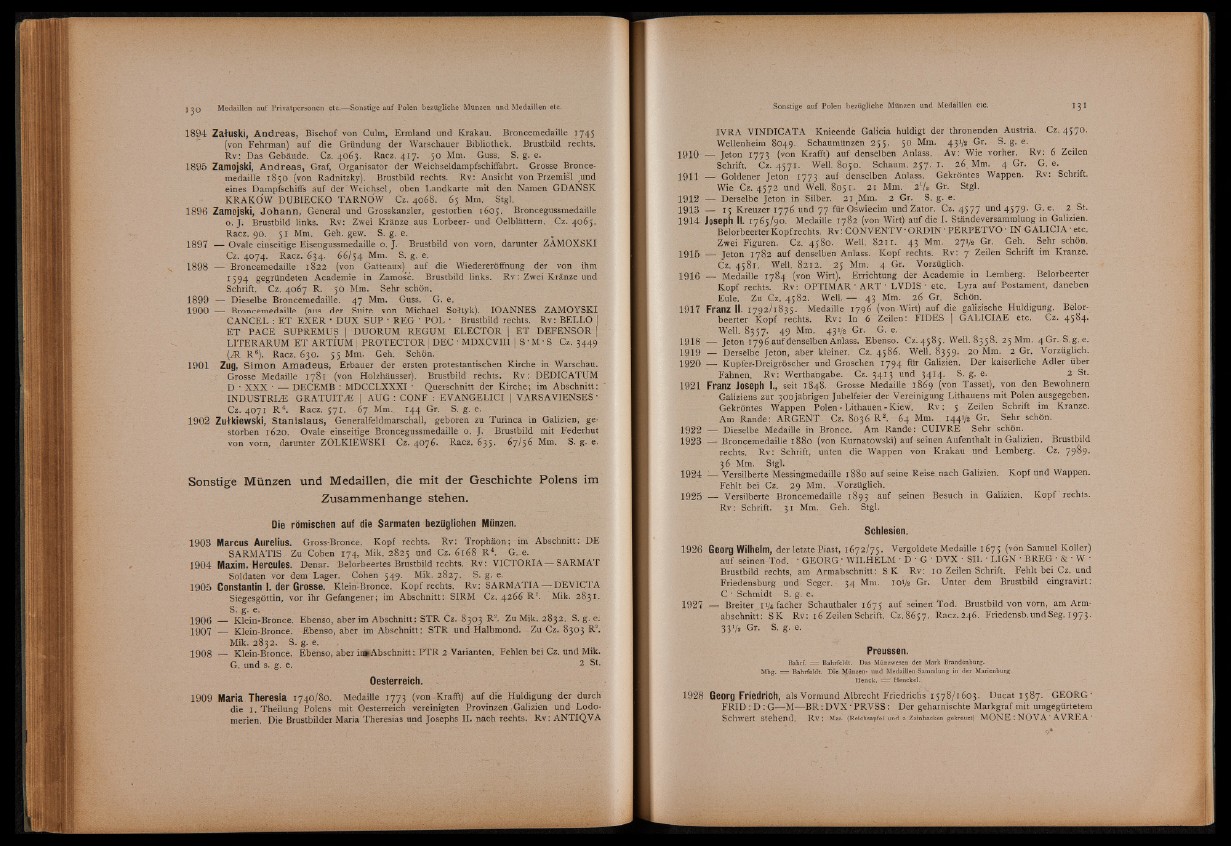 1924 ;— Versilberte Messingmedaille 1880 auf seine Reise nach Galizien. Kopf und Wappen.