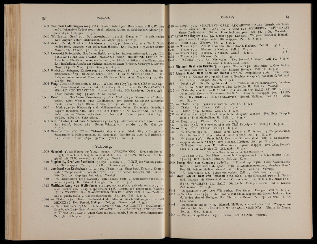 1514 — Thaler 1536. Unter Cardinaishut d. Stifts- u. Geschlechtswappen, darunter