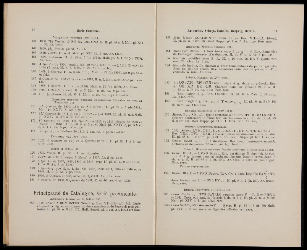 de Catalogne entourées d’arabesques, fl. pl. 87 n. 9. Ae. 3 ps. b.c.