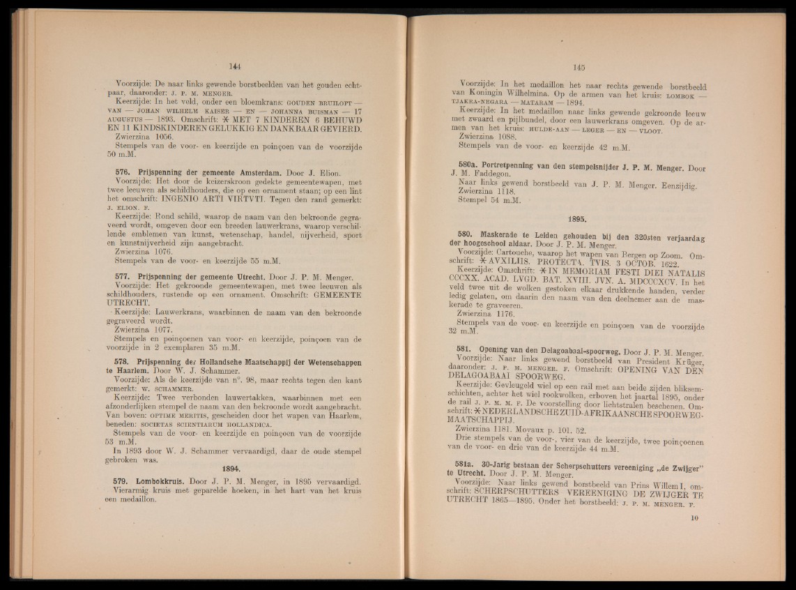 577. Prijspenning der gemeente Utrecht. Door J. P. M. Menger.