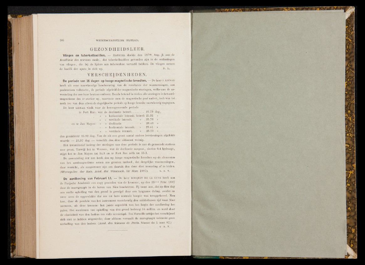 Vliegen en tuberkelbacillen. — Ranvieb, deelde den 161™ Aug. jl. aan de