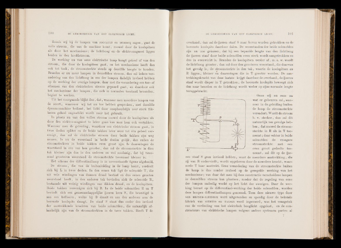 zich bij L in twee deelen. In den eenen tak ligt de solenoïde T , die