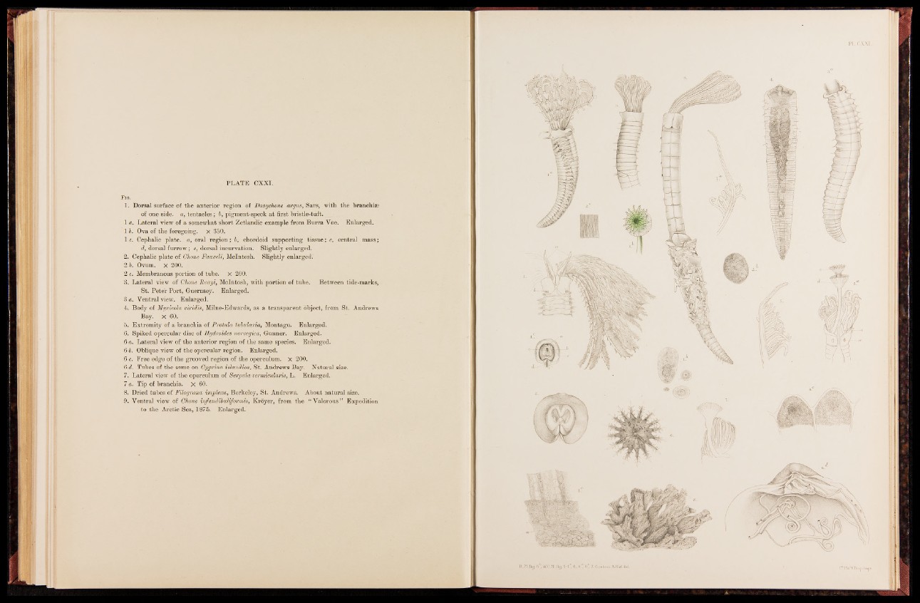 1. Dorsal surface of the anterior region of Dasychone argus, Sars, with the branchiae