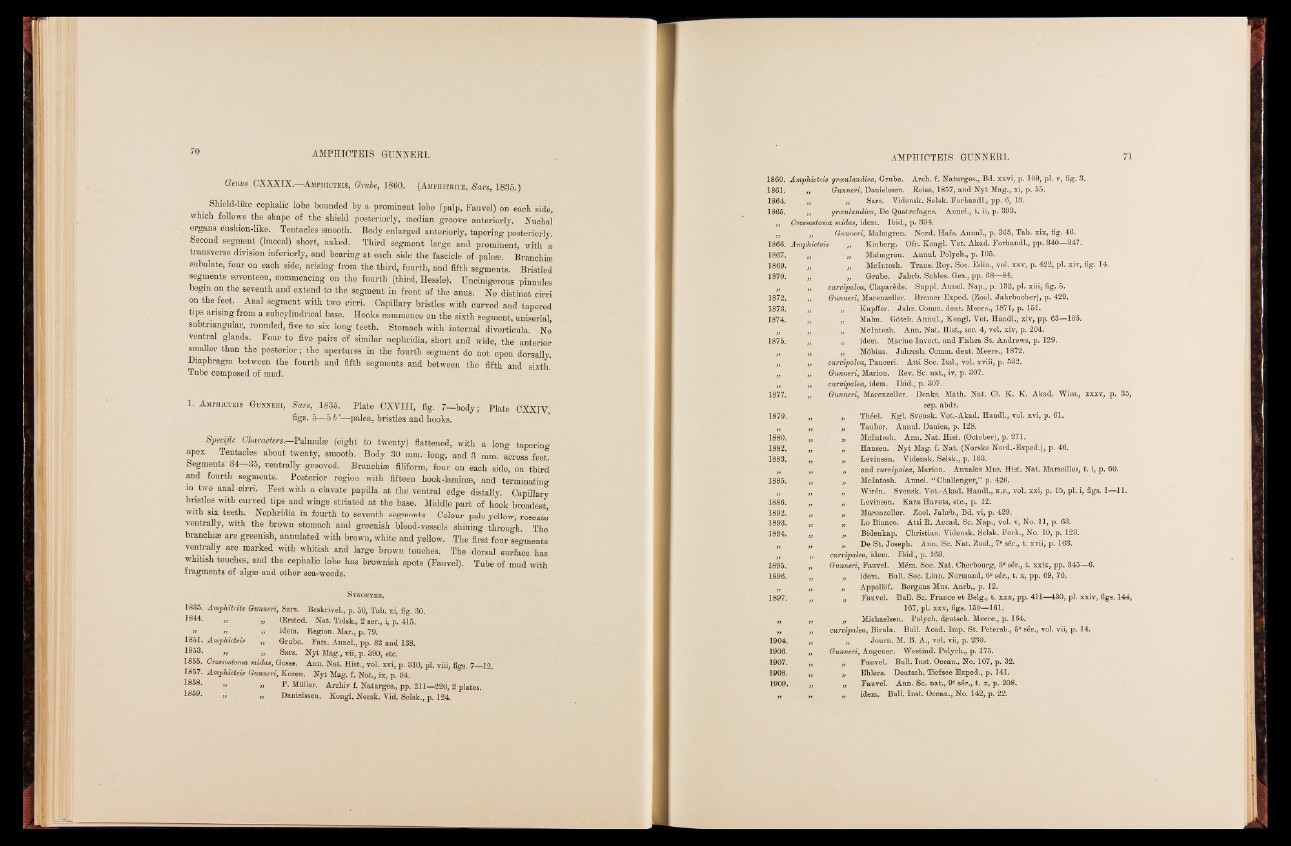1. Amphicteis Gunneri, Sars, 1835. Plate CXVIII, fig. 7—body; Plate CXXIY
